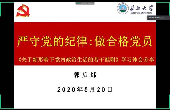 最后,郭书记针对组织发展提出了做法和要求,作为员工党员,首先要有信仰,党性好,入党动机要端正,综合成绩优秀,同时经得起历史检验,积极为师生服务,对集体有奉献精神。