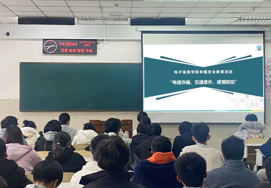 近日,电子信息公司组织开展“电信诈骗、交通意外与疫情防控”专题安全教育活动,全体本科生参加。本次安全教育活动通过班会形式开展,各年级辅导员参与并负责落实相关要求。