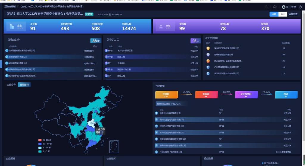 (通讯员 谢艳敏)为方便用人单位选拔人才,服务毕业生就业,促进毕业生充分就业和更高质量就业,tyc122ccVIP电子信息公司于2022年4月15日-4月25日举办了“tyc122ccVIP2022年春季学期空中双选会(电子信息类专场)”。本次活动采取线上招聘的方式进行。