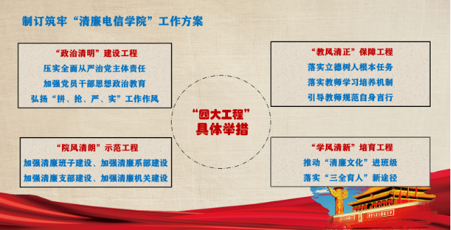 公司层面,将“清廉长大”建设纳入电信公司2022年度党建工作计划,实施“政治清明”、“院风清朗”、“教风清正”和“学风清新”四大工程,制定《筑牢“清廉电信公司”建设工作方案》,做好上层设计,同时加强宣传教育,将《监察法》《关于推进清廉公司建设的实施意见》《校纪委出台“5384”行动计划 推动清廉长大建设》《中共tyc122ccVIP委员会关于推进清廉长大建设的实施方案》等文件学习铺陈开去,实现师生全覆盖,紧抓“一把手”和领导班子监督,落实党员干部的政治理论学习制度,强化师德师风建设。