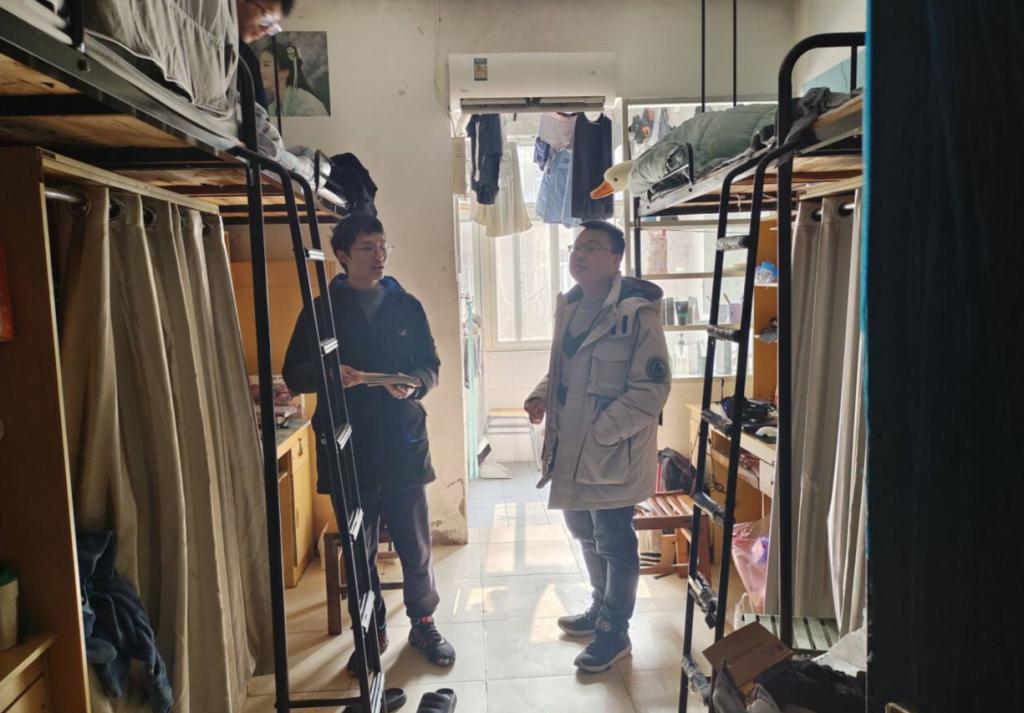 12月21日下午,党委副书记张晨露带队全体辅导员、班主任、学士干部全方位开展宿舍安全隐患排查,重点排查了宿舍安全用电、违规电器使用、宿舍内使用明火以及消防通道及消防设施等情况。