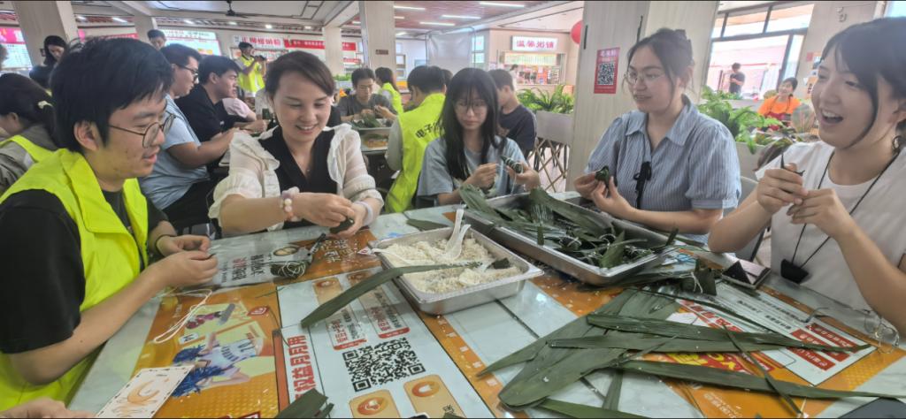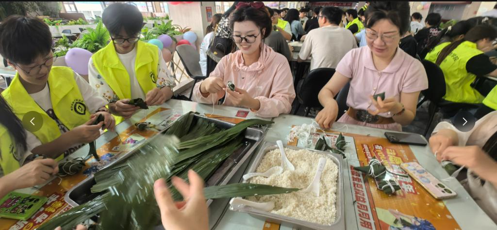 粽香传情,师生们品尝着自己亲手包制的粽子,开启了一场温馨的“成长茶话会”。大家围绕学业压力、职业规划、人际交往等话题畅所欲言。面对学业压力,有同学分享了自己的时间管理技巧和学习方法;在职业规划方面,学长学姐们结合自身经历,为学弟学妹们提供了宝贵的建议;谈及人际交往,大家纷纷讲述着自己在与同学、老师相处过程中的趣事和感悟,互相学习如何更好地沟通与理解。老师们也认真倾听同学们的心声,给予专业的指导和温暖的鼓励,现场气氛热烈而融洽。
