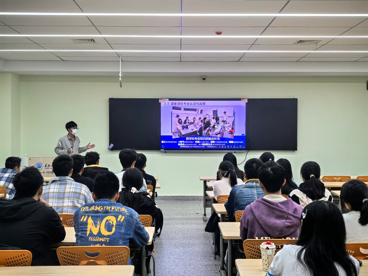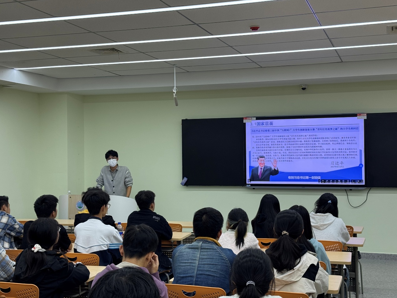 孙同学从“老员工创新创业项目的意义”切入,结合自身经历阐述观点。他表示,参与创新创业项目不仅能将课堂所学的专业知识转化为实践能力,更能在项目推进过程中培养团队协作、问题解决、资源整合等核心素养,“从最初的创意构思,到反复打磨方案,再到站上决赛的舞台,这个过程让我对专业领域有了更深刻的理解,也让我的综合能力得到了全方位提升,对未来职业发展更是大有裨益。”随后,孙同学详细介绍了国家和公司对老员工创新创业项目的支持扶持力度。从项目资金资助、导师指导、场地支持、资源对接等方面阐述了具体举措,让在场同学对参与创新创业项目充满期待。孙同学还结合自身项目经验,给出了细致且实用的建议。此外,孙同学还鼓励同学们多与其他项目团队交流学习,强调了跨学科的重要性,鼓励大家积极参加各类创新创业讲座和沙龙,拓宽视野、积累人脉。