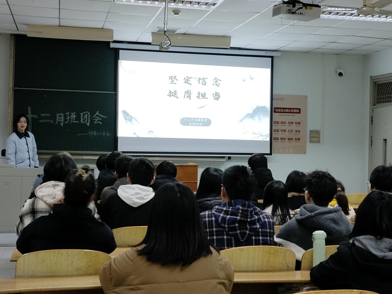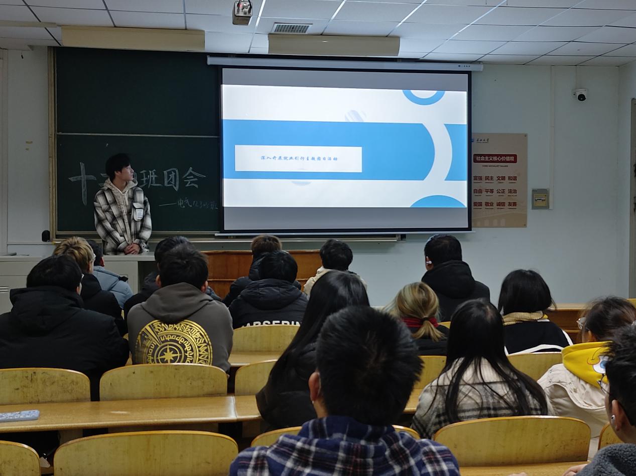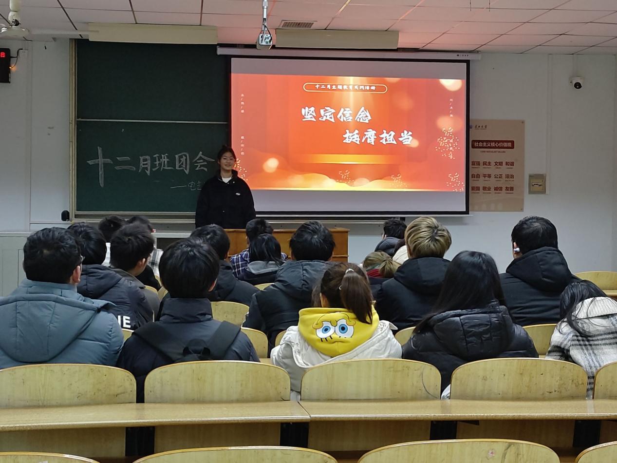 12月20日晚七点,仪器12201团支部在东13教D524开展十二月班团会。在班团会上,主持人刘雅欣同学带领同学们学习“挺膺担当”专题,深入学习习近平总书记关于青年工作的重要思想,重点学习习近平总书记对青年一代的殷切希望和重要要求,激发强国有我的青春激情,争做有理想、敢担当、能吃苦、肯奋斗的新时代好青年,在中国式现代化建设中挺膺担当。刘雅欣同学带领班上同学深入开展就业引航主题团日活动,许多同学对自己未来的职业规划畅所欲言,大家对将来就业岗位产生激烈讨论,这不仅帮助员工们强化了就业意识,也初步明确了就业发展方向。最后,刘雅欣督促同学们参与“青年大学习”网上主题团课学习。