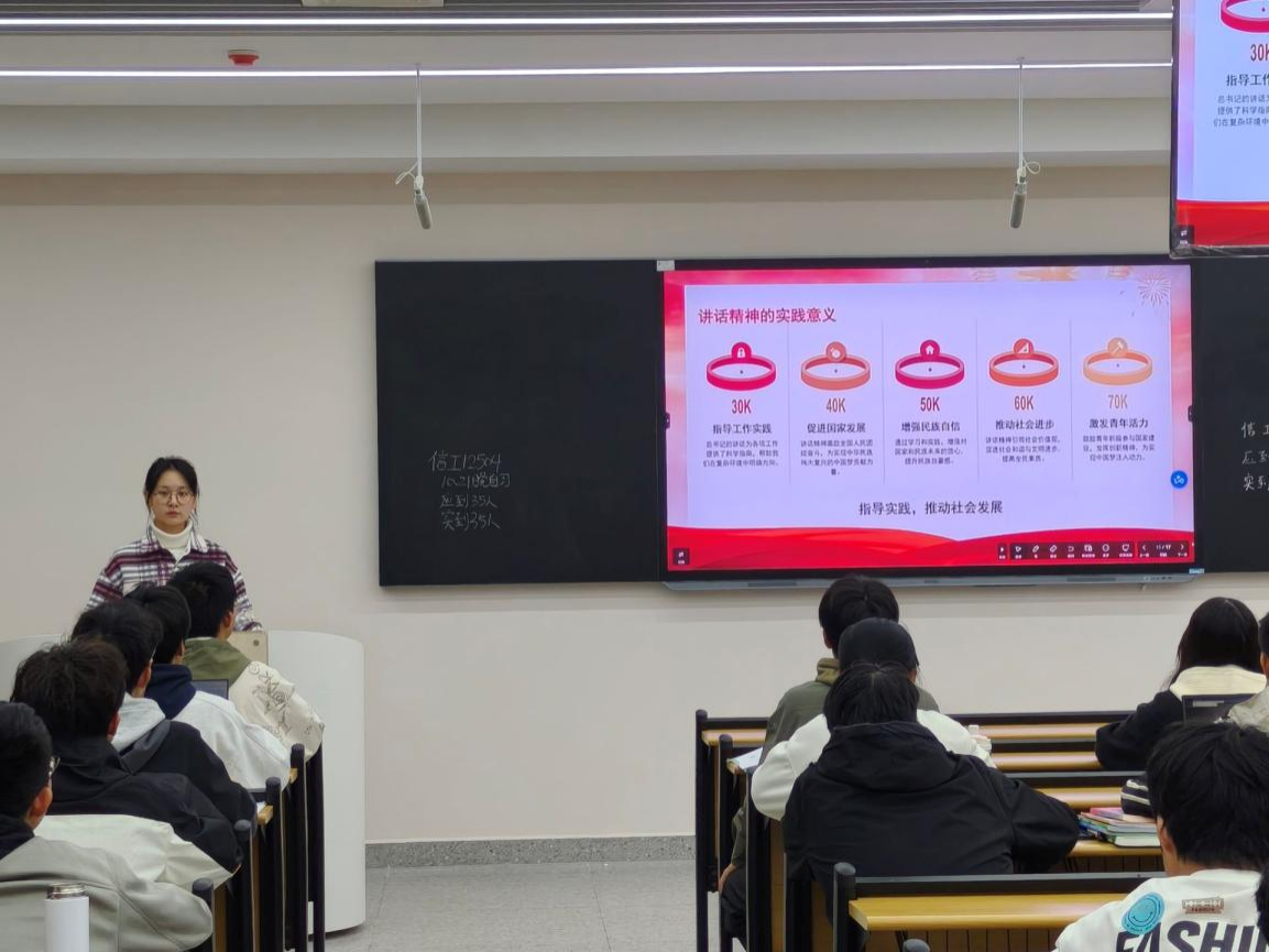 信工12503班团支部于2025年10月在16-D-309教室成功举办了十月主题团日教育实践活动。团支部组织全体团员集中学习了习近平总书记近期部分重要讲话和重要指示批示精神。通过观看视频、领学人讲解、小组讨论等形式,同学们重点学习了《习近平给天津大学全体师生的回信》以及“系统推进我国宗教中国化”等重要理论知识。在学习重要回信精神时,同学们深刻感受到习近平总书记对青年一代的殷切期望,备受鼓舞;在围绕“宗教中国化”进行学习讨论时,大家进一步认识到坚持马克思主义无神论、筑牢意识形态防线的重要性。此次学习深化了同学们对国情与时政的理解,坚定了大家将个人发展融入国家事业的决心。