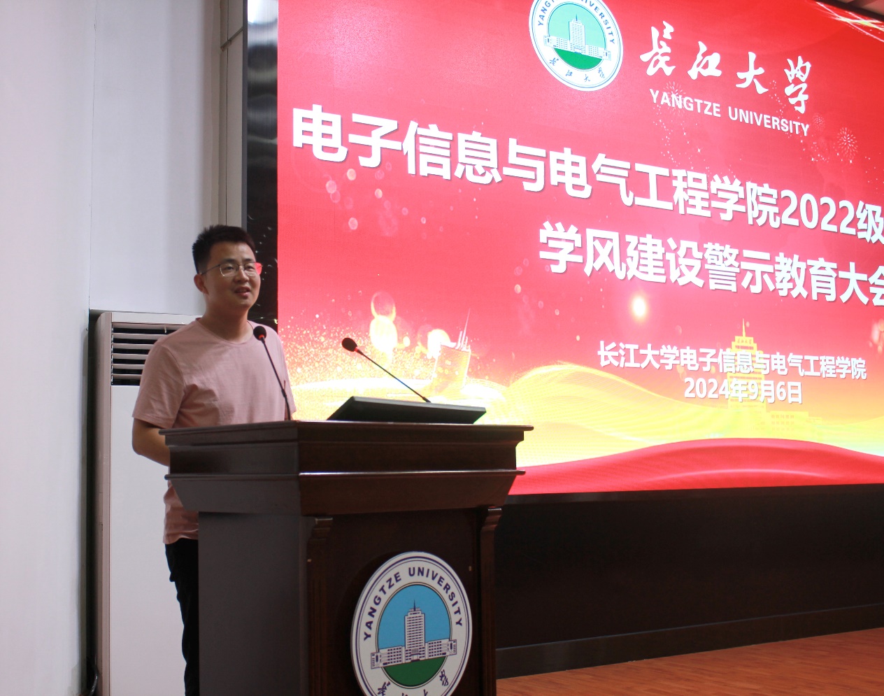 沈马锐从重修选课、课堂考勤、旷课处分、挂科情况、四六级情况、考研情况、安全教育等方面对同学们进行学风建设教育,并对近期重要事项作相关提示。