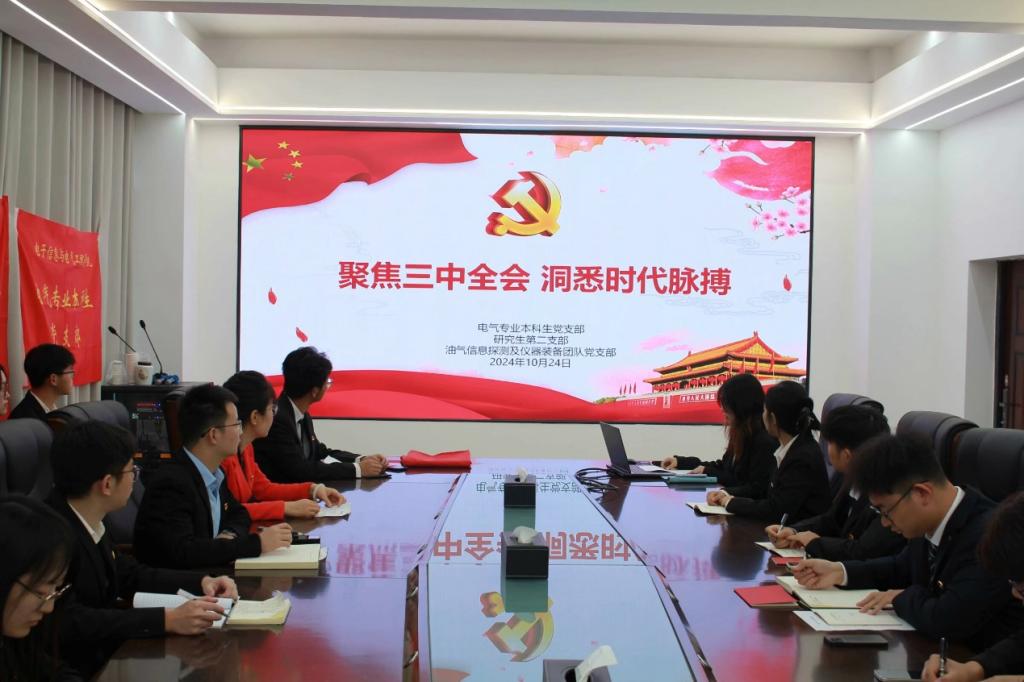(通讯员 吴思哲/文 袁慧琳/摄)“这次主题党日活动别开生面,紧密结合党的二十届三中全会精神,为大家提供了宝贵的学习机会,大家受益匪浅。”“本次党建共建活动,不仅增默契,更显实效。”10月24日下午,公司电气专业本科生党支部与研究生第二党支部、油气信息探测及仪器装备团队党支部联合开展“聚焦三中全会 洞悉时代脉搏”的主题党日活动,让员工通过这堂生动的“大思政课”更加明白个人命运与国家发展的紧密相连,激发为实现中华民族伟大复兴的中国梦而努力奋斗的决心和信心。