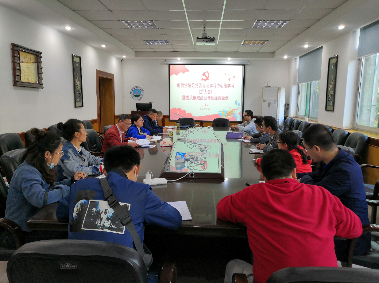 10月22日下午2:10,电信公司分党委理论学习中心组在10教205召开理论学习扩大会议暨党风廉政建设专题廉政党课,分党委书记刘逸主持会议,分党委理论学习中心组全体成员、党支部书记和系主任参加了本次学习。