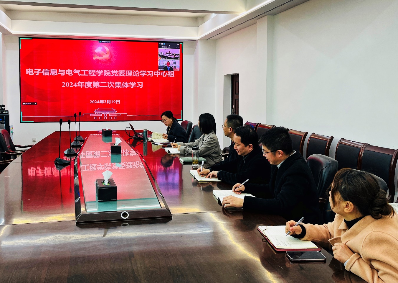 3月19日上午,电子信息与电气工程公司党委理论学习中心组在10教205会议室召开2024年度第二次集体学习会,党委书记郭梅主持学习。