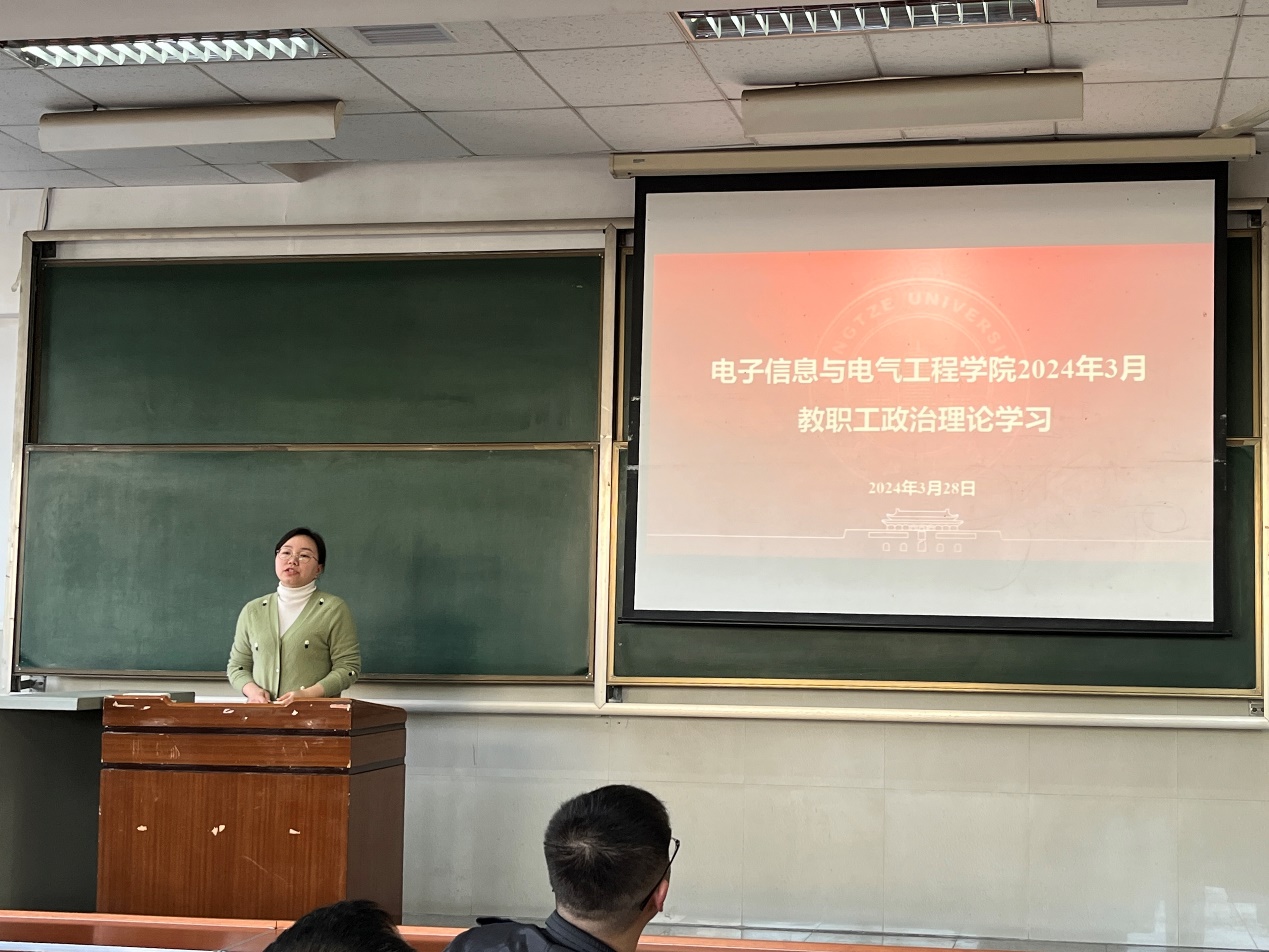 3月28日下午,公司在主教207召开教职工大会,党委书记郭梅带领全体教师开展政治理论学习。会上全体教师重点学习了习近平总书记在2024年春季学期中央党校(国家行政公司)中青年干部培训班开班之际作出的重要指示、《2024年国务院政府工作报告》、中共中央办公厅关于巩固拓展学习贯彻习近平新时代中国特色社会主义思想主题教育成果的意见等内容。