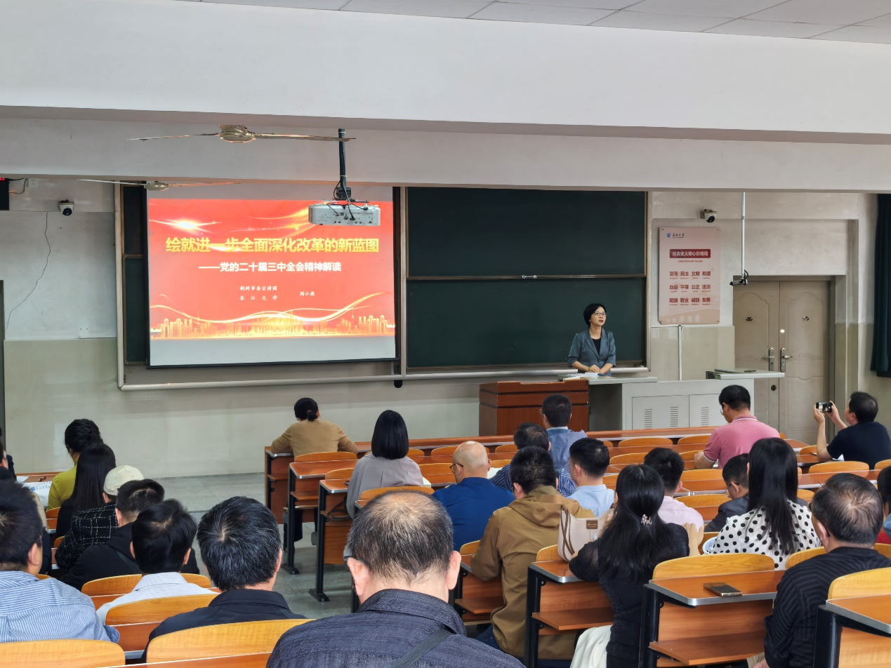 宣讲会上,刘小燕以《绘就进一步全面深化改革的新蓝图》为题,从理论视角、历史视角和实践视角三个维度,系统深入地讲解了改革的理论渊源、历史沿革以及实施过程,基于“怎么看、怎么干、怎么抓”三个视角解读党的二十届三中全会的具体要求,号召全体师生要将思想和行动统一到全会精神上来,积极投身到改革开放的伟大实践中去。