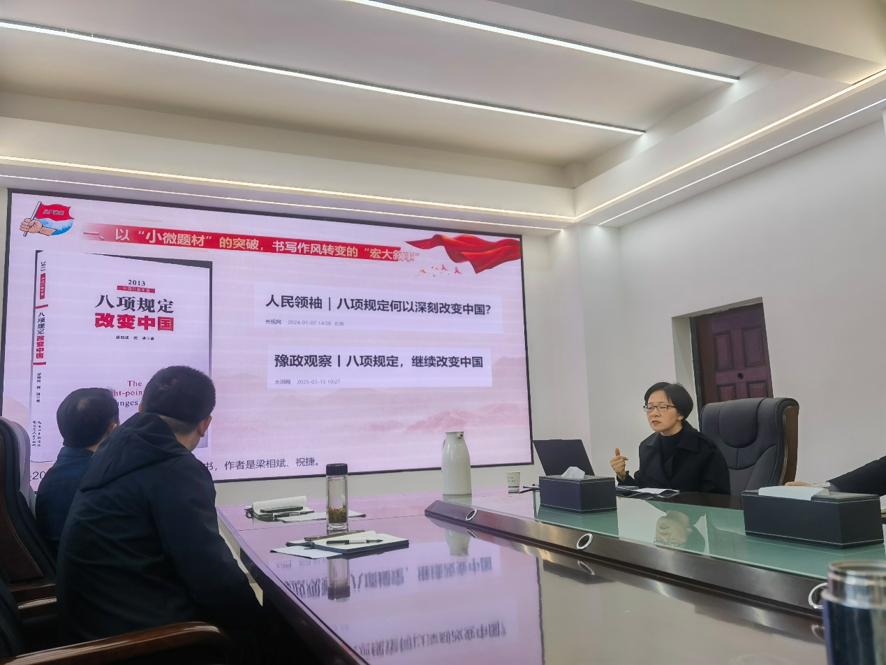 3月24日上午,公司党委理论学习中心组在10教205会议室开展2025年第二次集体学习暨深入贯彻中央八项规定精神学习教育读书班第一次集中学习。会议邀请马克思主义公司党委书记、市委宣讲团成员刘小燕作专题辅导,公司党委班子、党支部书记、教师党支部支委成员参加会议。 刘小燕以《作风建设永远在路上——深入贯彻中央八项规定精神学习教育》为题作辅导报告。报告中,她分析了党性、党风和党纪的有机联系,概述了党史上开展的系列集中教育,并从中央八项规定的主要内容、违反中央八项规定的主要表现、党的十八大以来作风建设的成效启示3个方面进行详细阐述。 辅导报告结束后,开展理论学习。郭梅领学《关于在全党开展深入贯彻中央八项规定精神学习教育的通知》《中共tyc122ccVIP委员会关于在全校开展深入贯彻中央八项规定精神学习教育的实施方案》《中国共产党党委(党组)理论学习中心组学习规则》《中共tyc122ccVIP委员会党委理论学习中心组学习规则》等内容;魏勇领学2025年全国两会精神相关内容;蒋涛领学2025年全国教育工作会议相关内容。 随后,与会成员围绕贯彻落实全国教育工作会议和全省“新春第一会”精神,结合公司2025年度工作部署会要求,就如何为一流学科突破作出贡献展开交流研讨,张晨露和周箩鱼开展重点交流发言。张晨露表示,全国教育工作会议和全省“新春第一会”的召开,为做好员工工作提供了根本遵循,要始终聚焦“立德树人”根本任务,创新工作方法,培养员工的社会责任感和家国情怀,使他们成为信念坚定、理论扎实、能力突出,有担当、有作为的高素质拔尖创新人才。周箩鱼表示,全国教育工作会议和全省“新春第一会”为公司开展平台建设、数字化、国际化等工作高质量发展指明了方向,将数字化技术与实验教学深度融合,推动实验教学与科研、工程实践的紧密结合,提升教学质量和效率。通过定期举办竞赛经验分享会和成果展示活动,激发员工参与热情和创新活力,推动学科突破。 郭梅在总结时表示,全党上下正开展深入贯彻中央八项规定精神学习教育,全体党员同志要高度重视,深入开展学习研讨、带头查摆问题、整改落实,把学习教育组织好、推进好、落实好。中心组学习后开展党支部书记工作会议,郭梅对近期的党建工作作了安排和布置,强调了党支部“三会一课”的严肃性和规范性,并要求各支部认真组织开展深入贯彻中央八项规定精神学习教育,推动学习教育取得实效。 (复审 张晨露 终审 郭梅 编辑 李蒙)