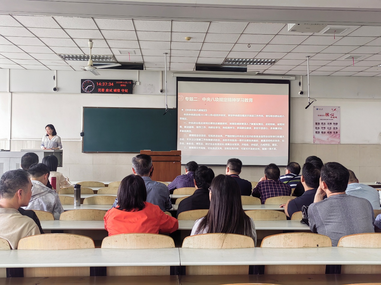 4月17日下午,公司在12教302组织开展教职工政治理论学习,党委书记郭梅带领全体教职工集中学习了习近平总书记重要讲话精神、重要文章及深入贯彻中央八项规定精神学习教育等有关内容。主要包括:习近平总书记历次考察湖北的重要讲话精神、《求是》杂志发表的习近平总书记重要文章《朝着建成科技强国的宏伟目标奋勇前进》、中央八项规定的内涵及实施细则。会上还进行了意识形态工作交流通报和师德师风警示教育工作,郭梅通报了2025年第一季度意识形态风险研判情况,介绍了近期国内外热点事件,对公司的安全稳定工作提出了要求。