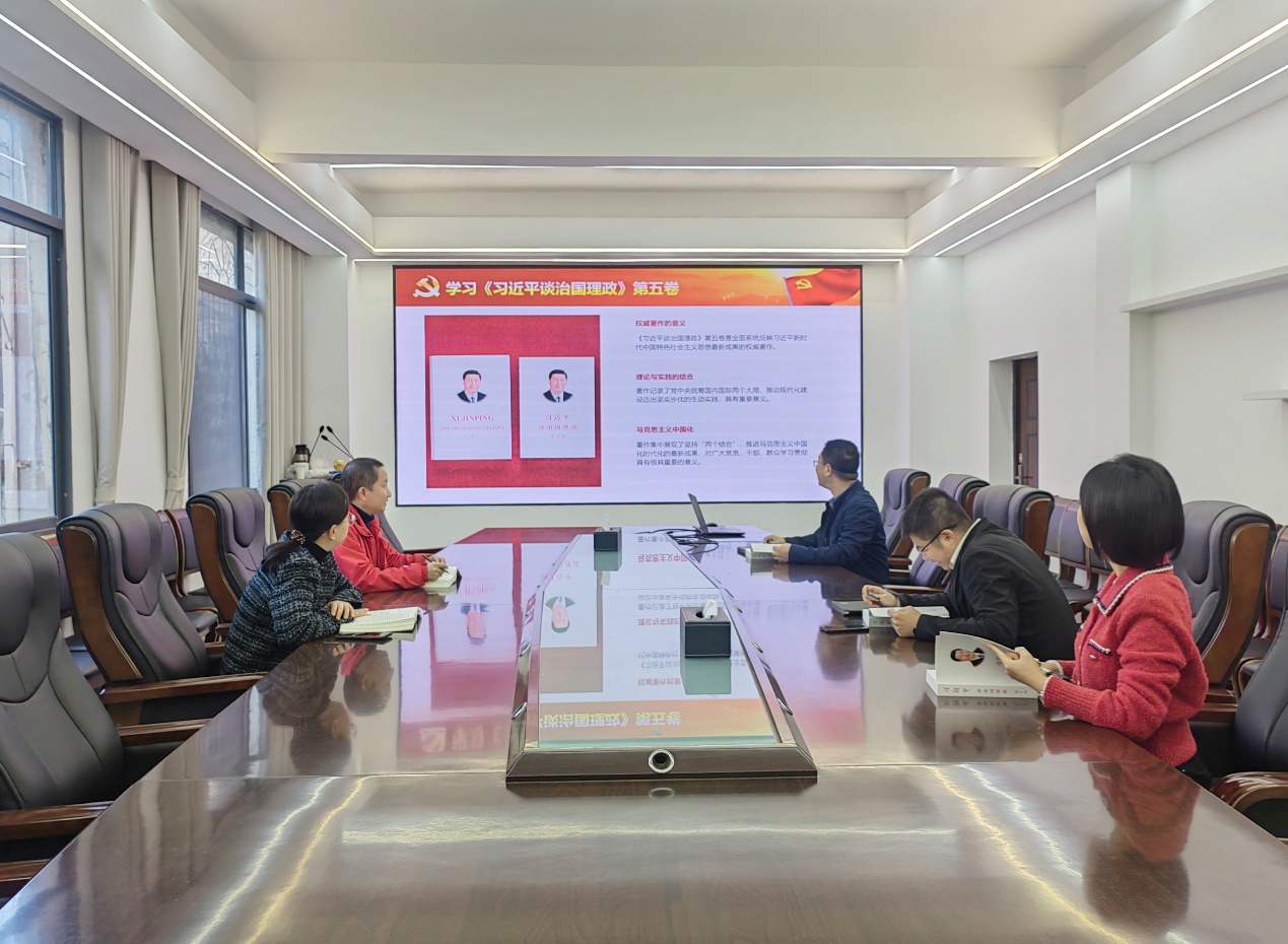 会议强调,《习近平谈治国理政》第五卷生动记录了以习近平同志为核心的党中央进一步谋划和推动全面深化改革、推动全面建设社会主义现代化国家迈出坚实步伐的生动实践,是全面系统反映习近平新时代中国特色社会主义思想最新成果的权威著作,要将学习《习近平谈治国理政》第五卷作为当前一项重要政治任务来抓,将学习与公司的建设发展实践紧密结合,党员领导干部带头学深悟透,不断将学习成果转化为推动公司发展的强大动力。