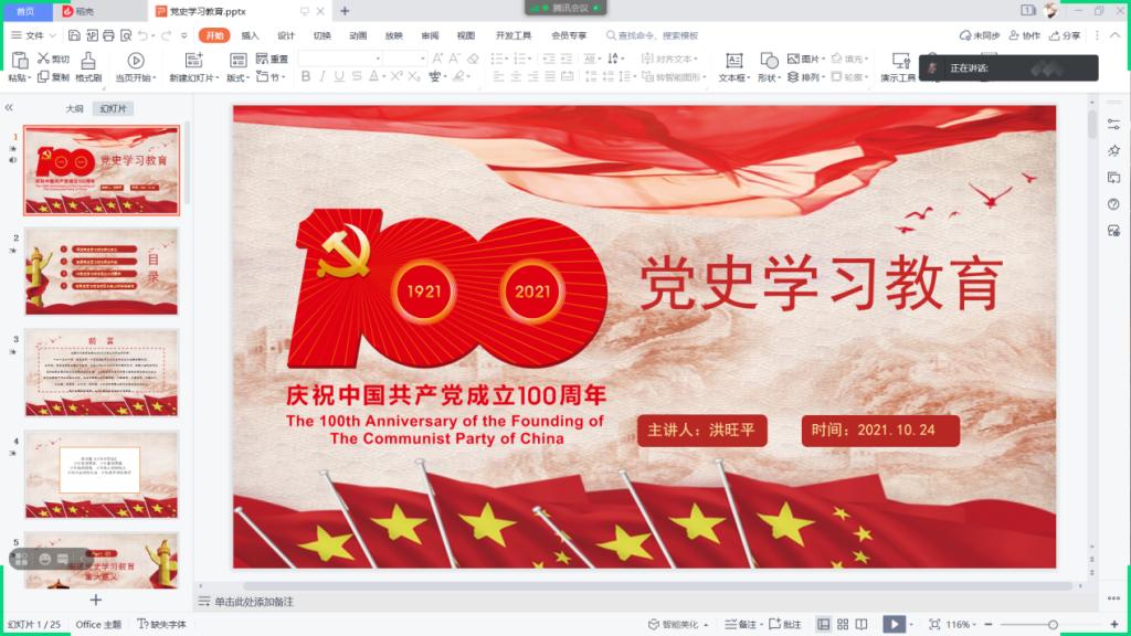 并且为了弘扬伟大建党精神,本学期还增设了党史学习课程,向员工们宣讲革命先辈事迹,激发员工的爱党爱国情怀。从中国马克思主义早期传播者、为中国共产党创立做出杰出贡献的李大钊,到骁勇善战、铁骨铮铮的抗日英雄杨靖宇;从坚贞不屈、视死如归的刘胡兰,到艰苦奋斗、无私奉献的人民好公仆焦裕禄;从信念坚定、许党报国、为藏族群众送去党的关怀和温暖的孔繁森,到不忘初心、牢记使命、为群众脱贫献出宝贵生命的黄文秀,队员们饱含深情地再现了英雄故事。