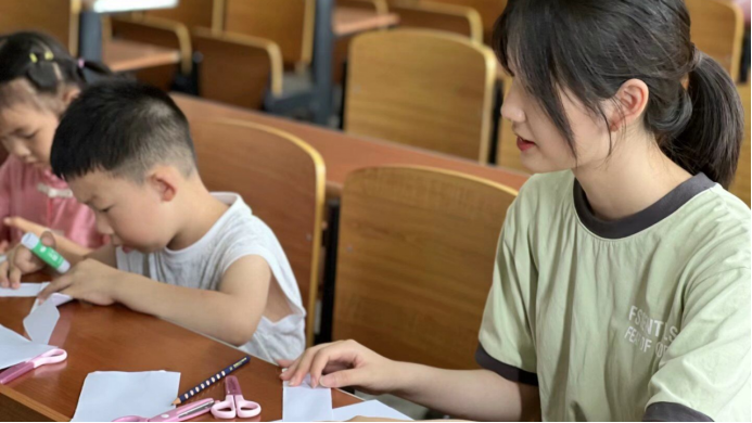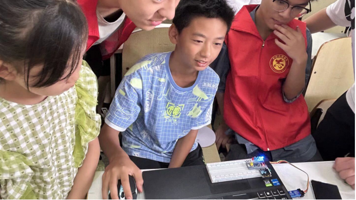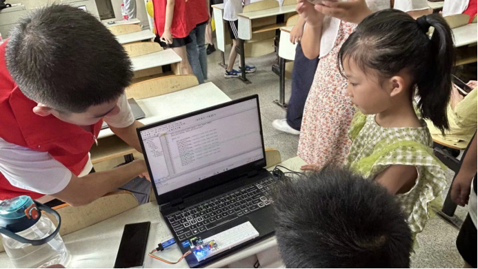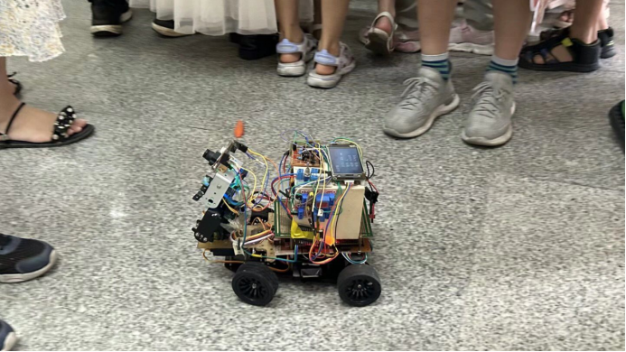 在本次实践活动中,tyc122ccVIP的研究生和本科生结合学科优势,通过开展人工智能技术科普、儿童创意编程、趣味科学实验,展示智能小车、无人机等竞赛作品,促进中小员工对人工智能的了解和认知,通过音乐、舞蹈、手工剪纸画等形式开展古诗词、经典古文、人文典故、基本常识的教学,帮助他们感受中华优秀传统文化的魅力。