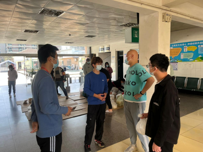 党员志愿者积极响应党委号召,留守校园、下沉社区积极开展疫情防控工作。辅导员们陪同生病员工就医,并陪伴和照顾需要做手术的员工。